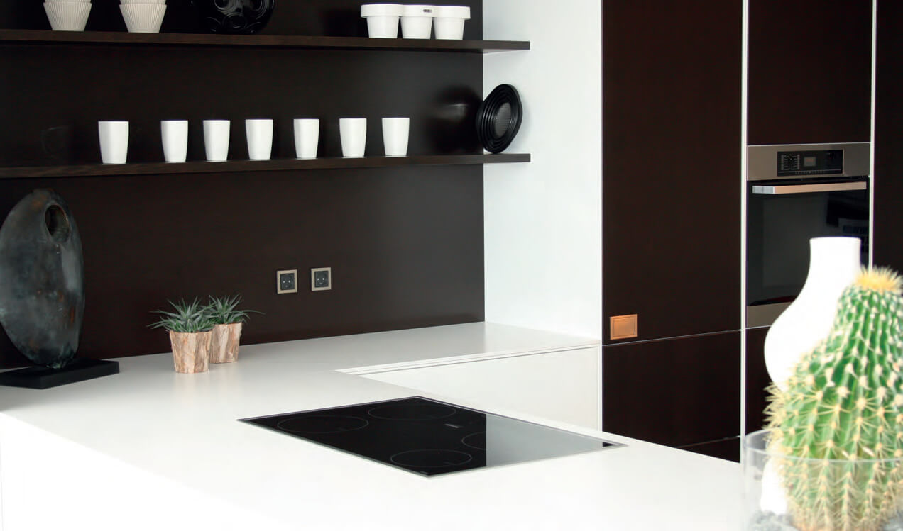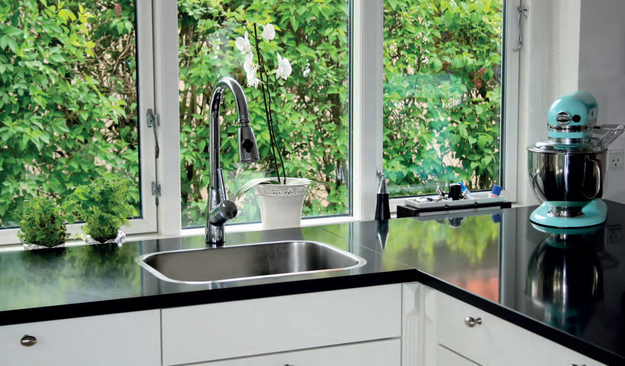 Basic+ findes bl.a. med blank overflade, hvilket sikrer dig mindst mulig vedligeholdelse i det daglige. Valgfri køkken/bad vask tilbydes nedfældet, planlimet, underlimet, underfræset eller integreret i bordpladen.