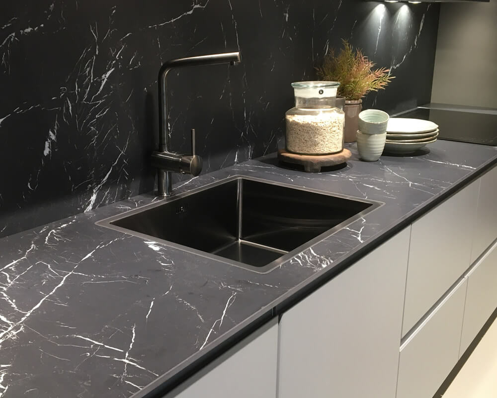 • Bemærk at enkelte nye opvaskemaskiner kræver alufolie under naturstensplader. Dette følger ikke med bordpladen.
